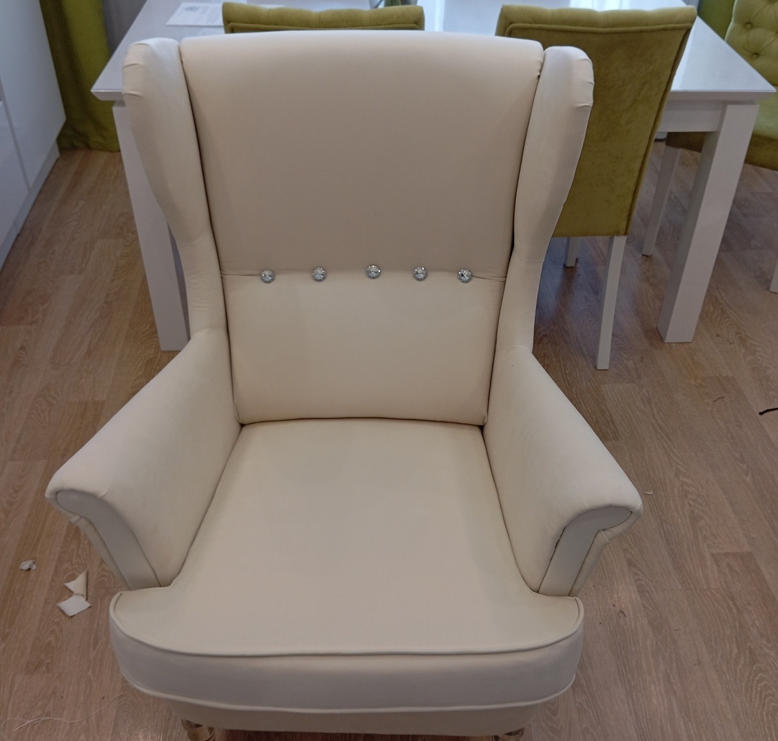 Заказ на перетяжку двух кресел и двух декоративных подушек. Работа выполнена качественно и в обговорённый срок. Все швы ровные, кресла и подушки выглядят словно с фабрики. Фирменные ярлыки производителя пришиты на те же места. Общение, оперативность, аккуратность оцениваю на 5/5.