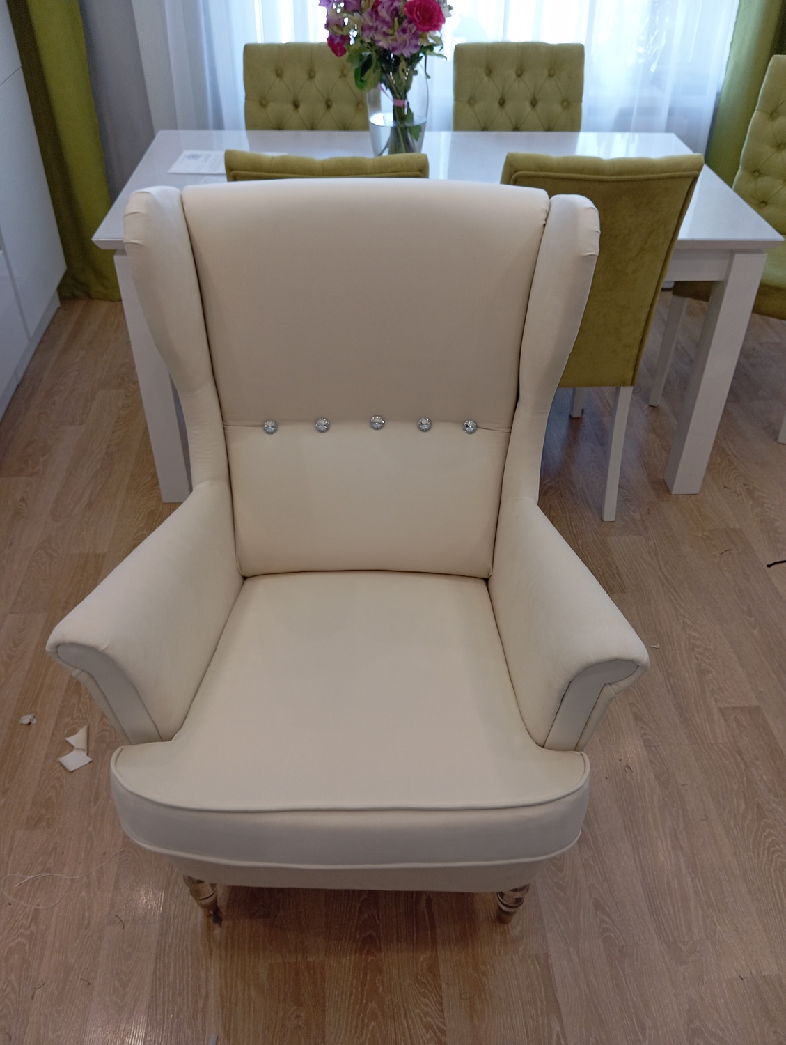 Заказ на перетяжку двух кресел и двух декоративных подушек. Работа выполнена качественно и в обговорённый срок. Все швы ровные, кресла и подушки выглядят словно с фабрики. Фирменные ярлыки производителя пришиты на те же места. Общение, оперативность, аккуратность оцениваю на 5/5.
